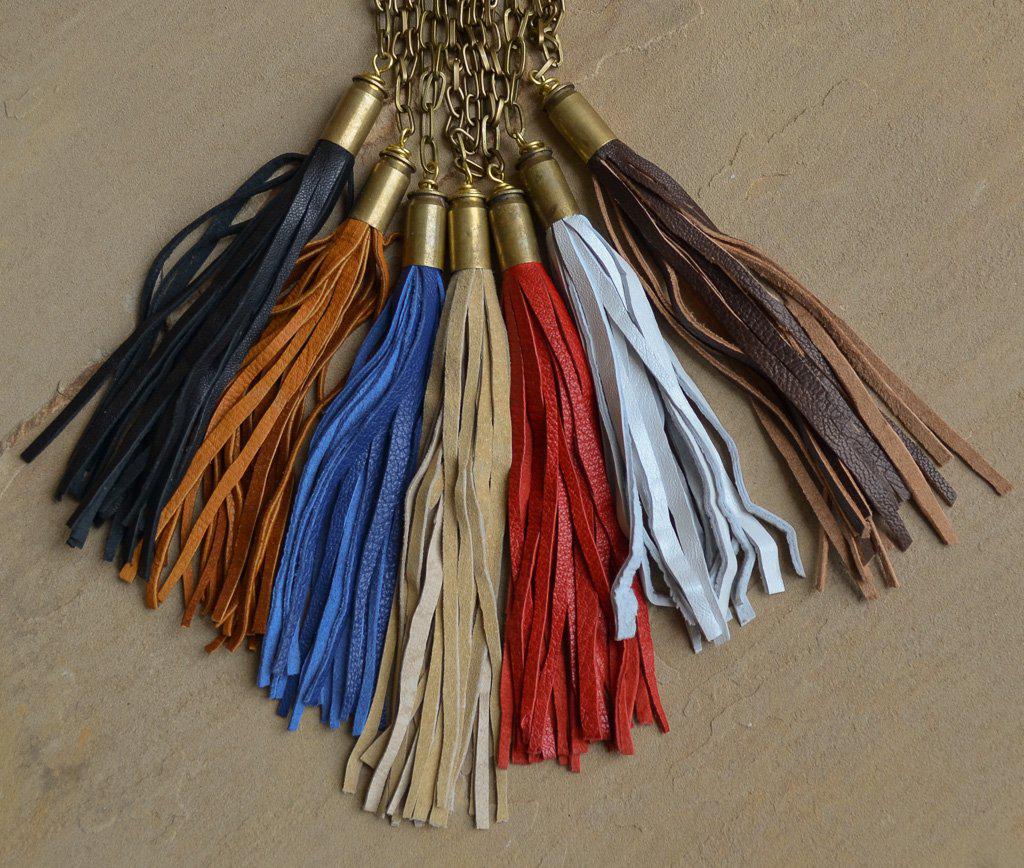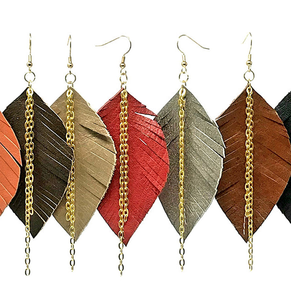 Repurposed leather leaf earrings, with tooling representing the "vein" of the leaf and silver-tone chain just to add a touch of awesomeness! Bohemi...
