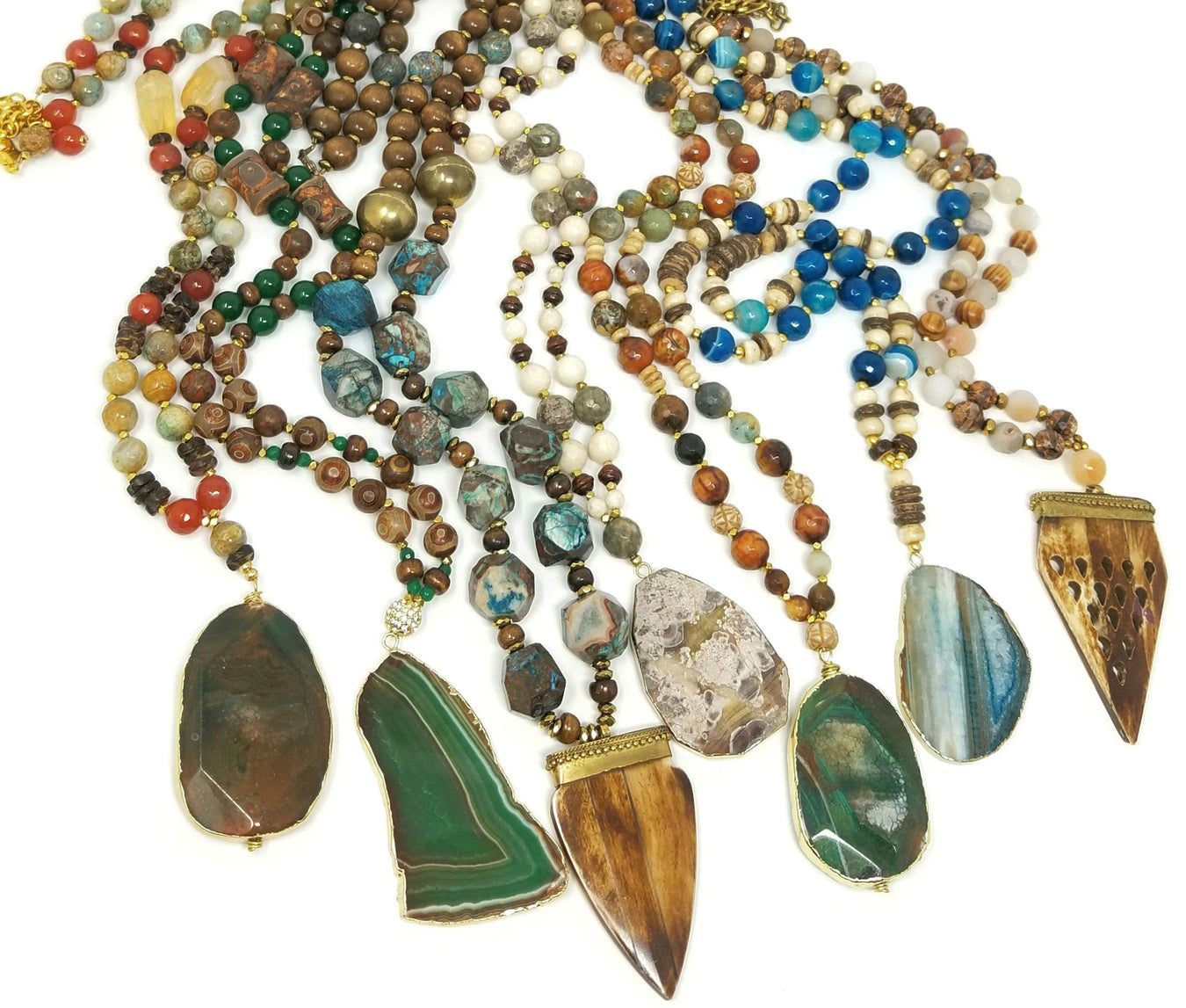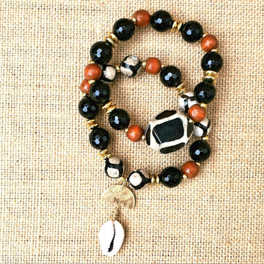 Bone & Gemstone Bracelets Sade' is bold and will make a statement, adding that special touch to the perfect outfit. Agate gemstones,, wood bea...
