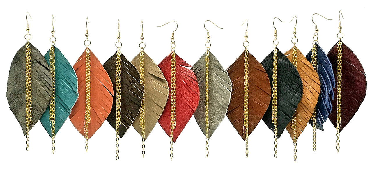Repurposed Leather Geometric Earrings Meet Harlow...Laser cut leaf earrings in hues of fall. Remnants sourced from a local upholstery factory have ...