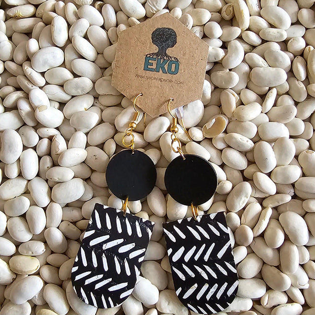 Repurposed Leather Geometric Earrings Meet Jade...Oval post earrings with a teardrop dangle. Remnants sourced from a local upholstery factory have ...