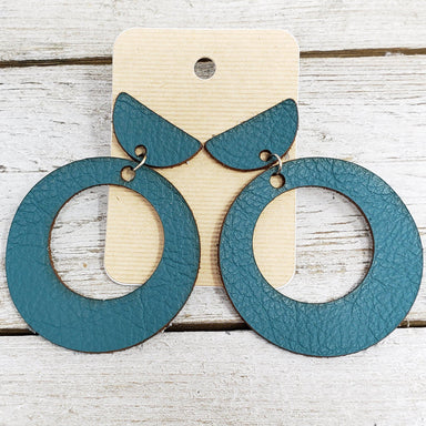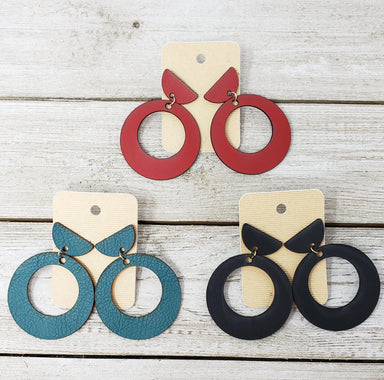Repurposed Leather Geometric Earrings Meet Indigo...Semi-circle post earrings with a hoop dangle. Remnants sourced from a local upholstery factory ...