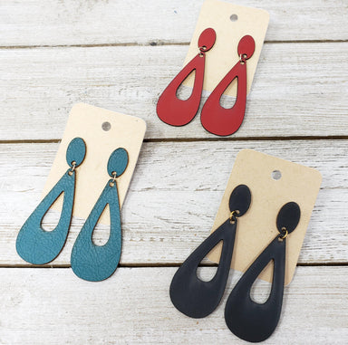 Repurposed Leather Earrings Morgan is bold and will make a statement, adding that special touch to the perfect outfit. Repurposed red, black and g...