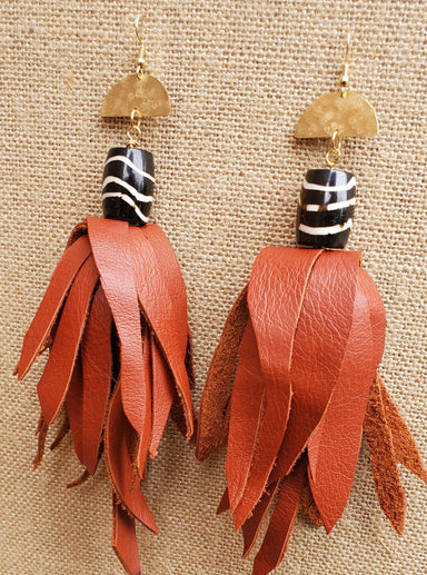 Repurposed Leather Earrings Sade' is bold and will make a statement, adding that special touch to the perfect outfit. Repurpised cognac leather, ...