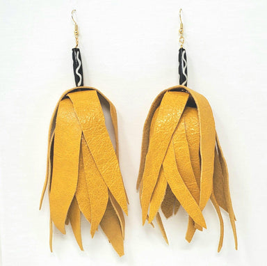 Repurposed Leather Earrings Zora is bold and will make a statement, adding that special touch to the perfect outfit. Repurposed mustard leather a...