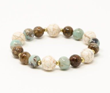 Bohemian Style Statement Bracelets Matte blue jasper and wood beads with brass leaf charm. Neutral tones make this piece the perfect way to top off...