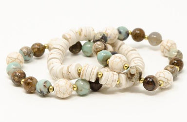 Bohemian Style Statement Bracelets Beautiful teal and earth tone agate with bone bead bracelet set. These neutral tones with a pop of color make th...