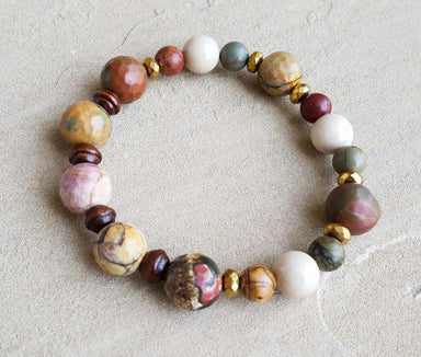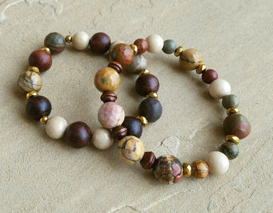 Jasper, jade, coconut shell and gold spacer bead bracelet set. Sold separately or as a set. Earth tones will accent any outfit, during any season. ...