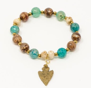 Tibetan agate, matte lapis lazuli, gold hematite and brass arrowhead charm. Bracelet is approximately 7". Looks great with our Tibetan Agate Lapis ...