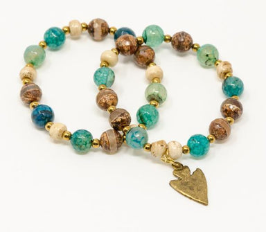 Teal agate, Tibetan agate, bone beads and gold spacer beads, with a brass arrowhead bracelet set. Bohemian style bracelets perfect for stacking or ...
