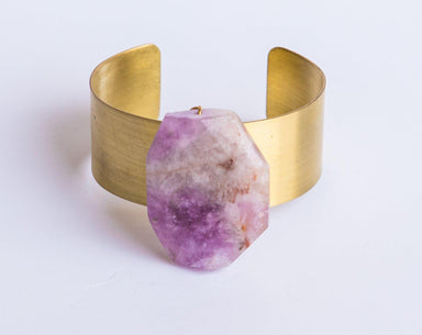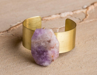Amethyst slab wire wrapped to recycled brass cuff, with matte brush finish. Looks great with the Amethyst Bone Agate Necklace, which is sold separa...