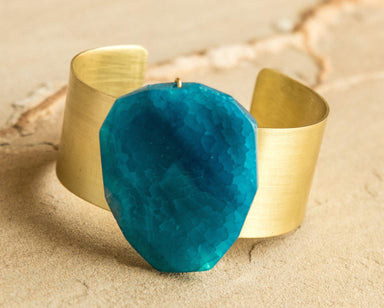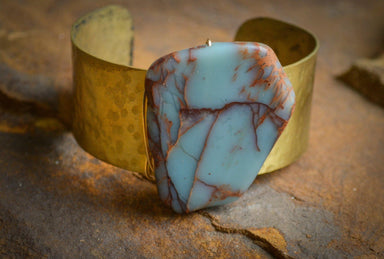 Large Caribbean blue agate wire wrapped to 1" wide recycled brass cuff. Standard cuff fits 6.5" - 7". Customization upon request. Every item sold p...
