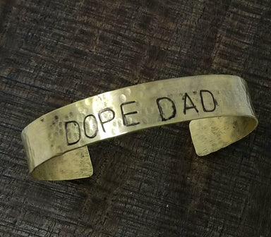 Recycled brass 1/2" hammered cuff with "Dope Dad" handstamped. This is the perfect gift for a cool dad. Let him know and let it be a constant remin...