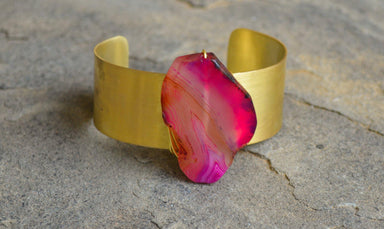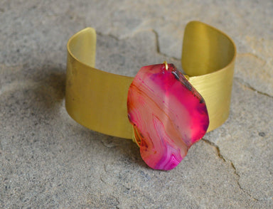 Large magenta agate wire wrapped to 1" wide recycled brass cuff. Standard cuff fits 6.5" - 7". Customization upon request. Every item sold plants a...
