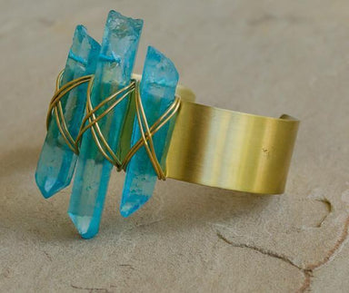 Hand-cut and polished, recycled brass 3/4" cuff with wire wrapped quartz stick beads. Cuff will fit wrist approximately 6.5 - 7.5". Melodi is a per...