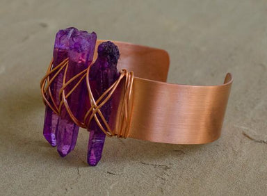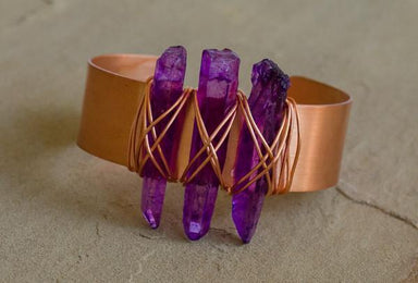 Hand-cut and polished, recycled copper 3/4" cuff with wire wrapped quartz stick beads. Cuff will fit wrist approximately 6.5 - 7.5". Melodi is a pe...