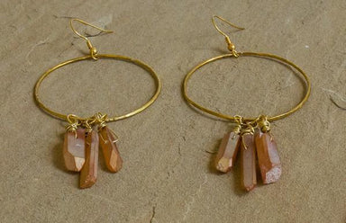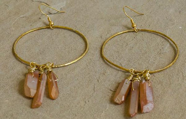 Hammered 2" recycled brass hoops and wire wrapped quarts stick earrings. Destini is a perfect piece for your summer wardrobe, a new addition to our...