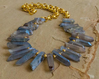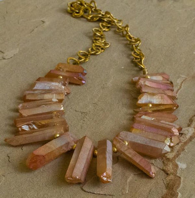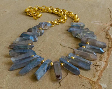 Quartz stick beads and brass spacer beads wire wrapped to chunky gold-toned with gold-toned clasp. Available in 20", 24" or 30" length. Agape is a ...