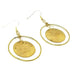 Recycled brass orbital moon earrings. Circle is 1" in diameter and outer hoop is 1.5" in diameter. Hand cut, textured and antiqued. Approximately 2" from earlobe.. Make the perfect statement all by themselves. Each pair will have slight variations due to being 100% handmade.