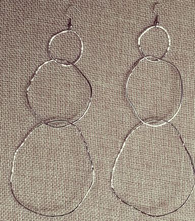 Fine silver triple hoops. Hammered for texture. Super lightweight and approximately 5" in length. The perfect addition to your summer wardrobe.