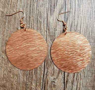 Recycled copper 2 inch circles hammered for Woodgrain texture. Bohemian style, versatile lightweight earrings. Every item sold plants a tree throug...