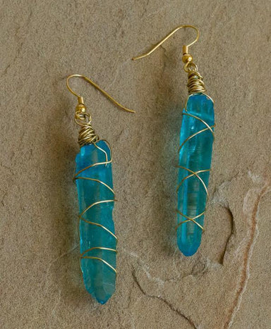 Wire wrapped quarts stick earrings. Justice is a perfect piece for your summer wardrobe, a new addition to our elements summer collection. Coordina...