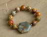12mm red creek jasper beads and gold plated beads make this bracelet the perfect accessory for fall. Bracelet is approximately 7" in length. Coordinating necklace sold separately.