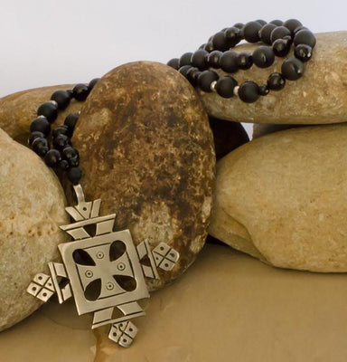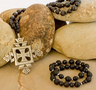 "Phoenix" is a new addition to our evolution collection. Striped matte black onyx, faceted black onyx, platinum hematite, with a silver toned Ethio...