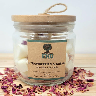 Wax & Petals Beautiful 100% soy, heart shaped wax melts, kissed by rose petals in a glass jar with a bamboo lid. Approximately 30 wax melts of ...