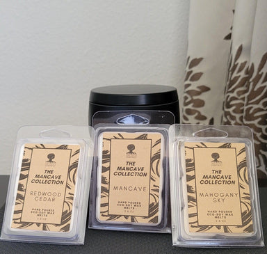 The Mancave Wax Melts Collection The Mancave Wax Melts Collection is a collection of 2 oz 100% eco-friendly soy wax melts in matte clamshells. Perf...