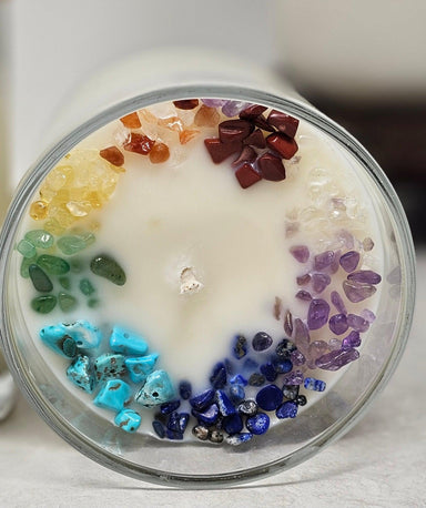 Gemstone Infused Eco-Soy Candles I am peaceful. I am balanced. I am self-aware and walking in my truth. Eco-soy wax infused with lapis lazuli. La...
