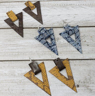 Our leather earrings are fun and lightweight. They are 100% upcycled. We create these wearable pieces of art from remnants sourced from upholstery and garment factories throughout the United States.