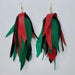 Morgan is bold and will make a statement, adding that special touch to the perfect outfit. Repurposed red, black and green lambskin has come together to create beautiful magic. She is lightweight and approximately 4" in length. Hypo- allergenic earwires and backs included. Availablein gold or silver.