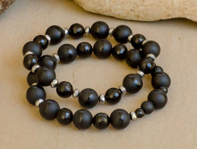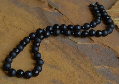 Striped matte black onyx, faceted black onyx and matte black onyx. Unisex. Available in 24" or 30". Coordinating bracelets sold separately. Every i...