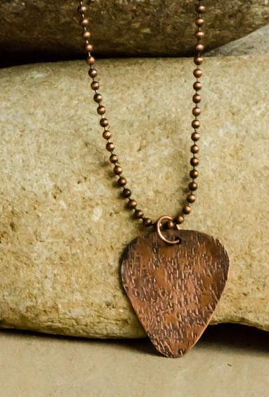 "Balance" is a new addition to our evolution collection. Hand textured, cut and oxidized recycled copper guitar pick pendant. Necklace available in...