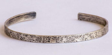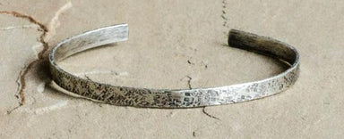 This is a new addition to our evolution collection. Hand textured, cut and oxidized recycled sterling silver heavy flat wire cuff. Fits 7.5"-8" wri...