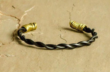 "Revolution" is a new addition to our 2016 evolution collection. Hand twisted and formed heavy gauge, dark steel wire cuff. Available with recycled...