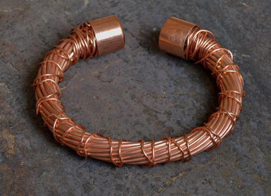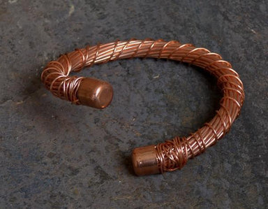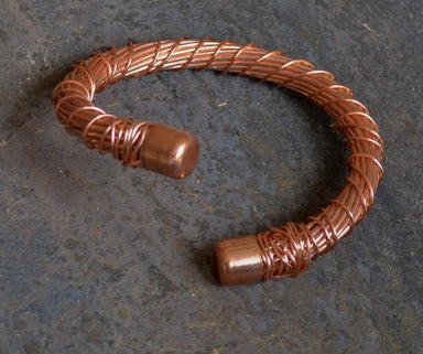 Heavy gauge, recycled, twisted copper wire cuff. Approximately 1/2" in diameter and will fit a 7.5" - 8" wrist. Available in natural or oxidized fi...
