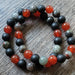 10mm matte black onyx, bloodstone and carnelian beads. Classic gemstone bracelet makes a bold statement. Approximately 8" in diameter. Perfect for stacking with other bracelets. Each bracelet sold separately.