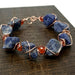 Rough sodalite and faceted carnelian freeform copper wire wrapped bracelet, with a handmade hook and eye closure. Each bracelet is unique and no 2 are the same.