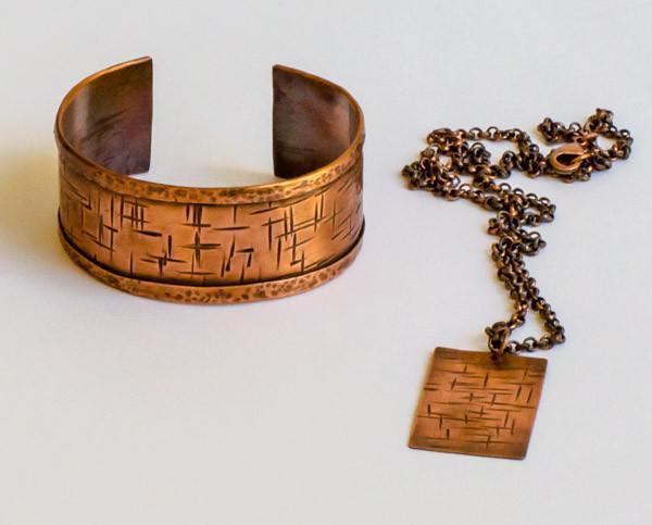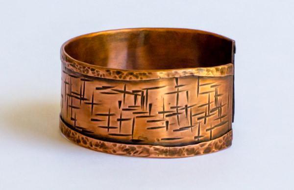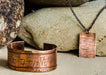 "Evolution" is a new addition to our MANCAVE collection. Hand textured, fold-formed, cut and oxidized recycled copper cuff. Fits 7.5" - 8" wrist. Every cuff will be unique and slight variations will occur due to the technique used. Coordinating necklace sold separately.