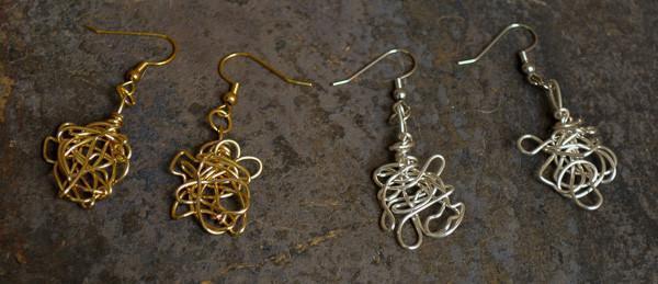 Hammered freeform wire wrapped brass earrings. Each pair is handmade and unique due to their freeform nature. Coordinating necklace and cuff available separately.