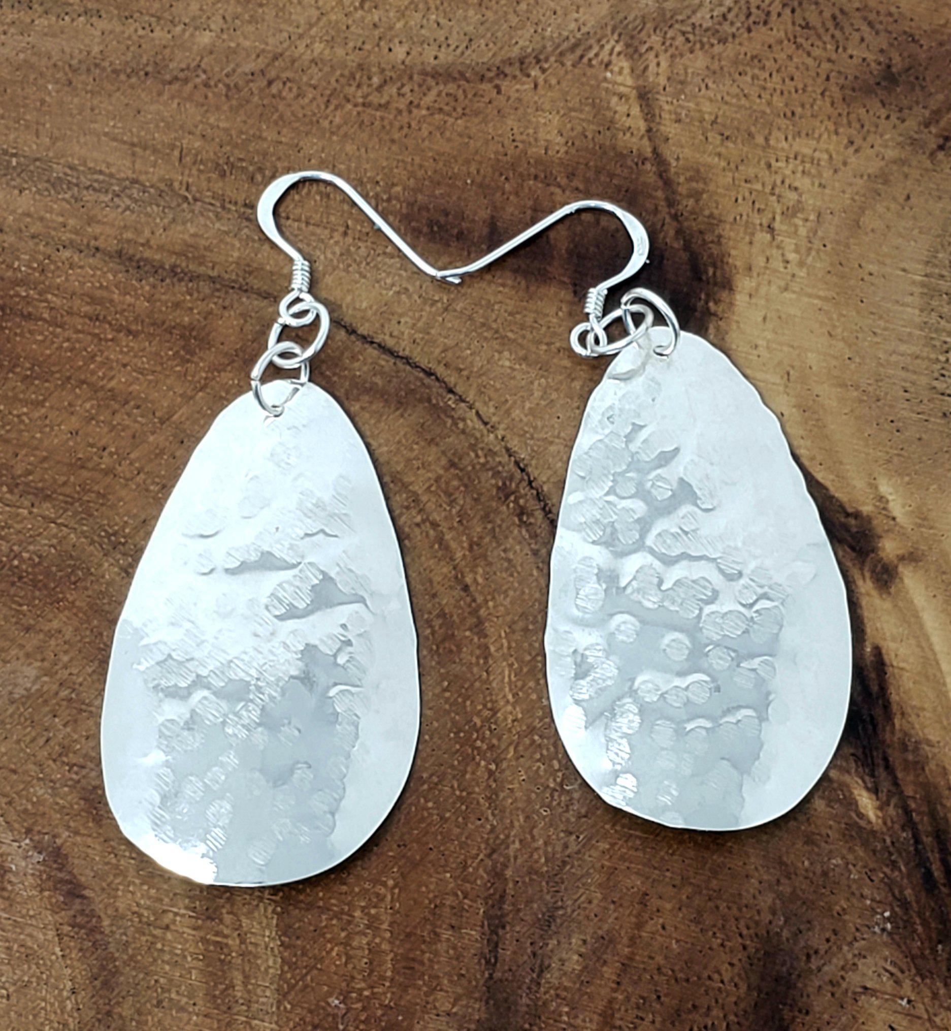 24 gauge recycled sterling silver teardrop earrings cut, hammered. Approximately 1.5" in length. Sterling silver ear wires. Perfect for the minimalist.