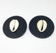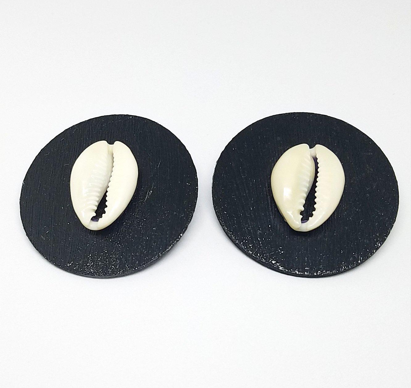 Hand painted wood circles with cowrie shells. Approximately 1.5" in diameter with nickel-free, hypo-allergenic posts.